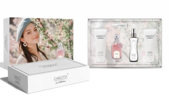 - El kit contiene: 1 Perfume / 1 Body Splash / 1 Gel de ducha / 1 Hidratante corporal / 1 Perfume Mine.