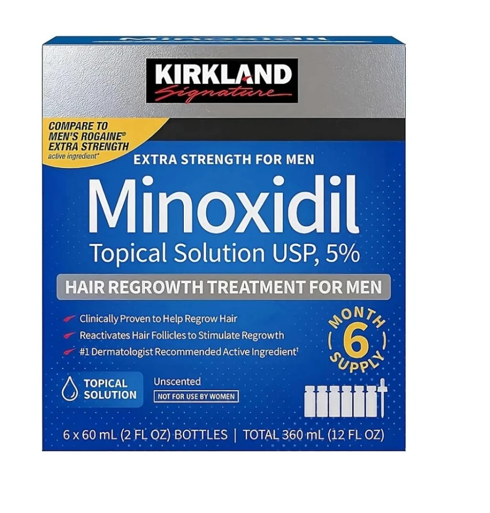 - El Minoxidil Kirkland es una loción capilar para los problemas de pérdida de cabello relacionados con la calvicie. Ayuda a revitalizar la raíz del cabello, normalizar el ciclo del folículo, prolongando la fase de crecimiento. También tiene la función de estimular la vascularización del cuero cabelludo permitiendo la oxigenación del área. Su uso debe ser continuo. También se puede usar en la barba y la ceja para estimular el crecimiento y corregir defectos