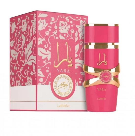 - Yara Candy de Lattafa Perfumes es una fragancia de la familia olfativa Floral Frutal Gourmand para Mujeres