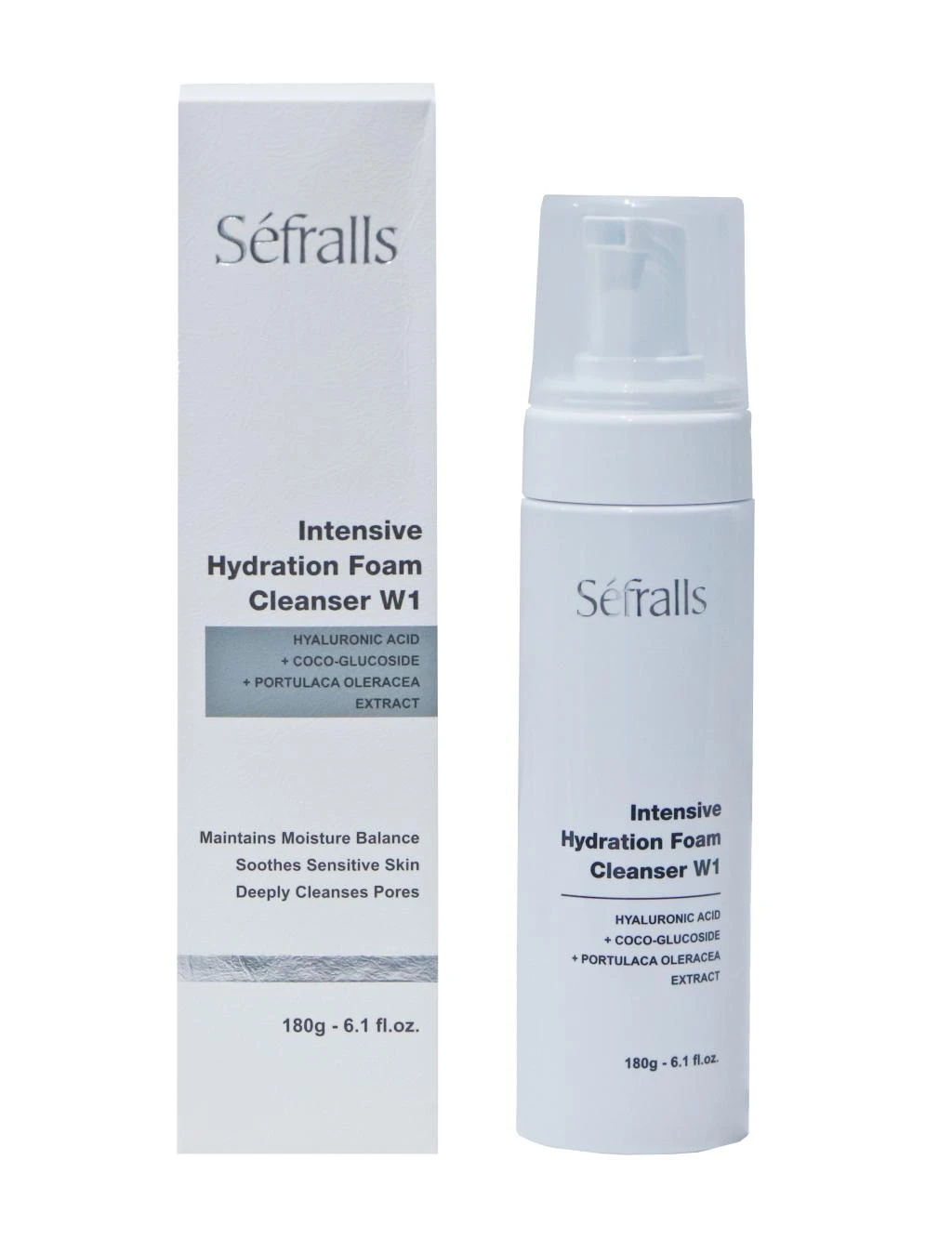 - Séfralls Intensive Hydration Foam Cleanser W1, un limpiador facial en espuma diseñado para la hidratación intensiva.