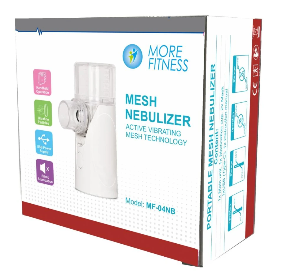 - Un nebulizador portátil que utiliza tecnología de malla vibratoria activa para convertir medicamentos líquidos en una niebla fina y fácil de inhalar.