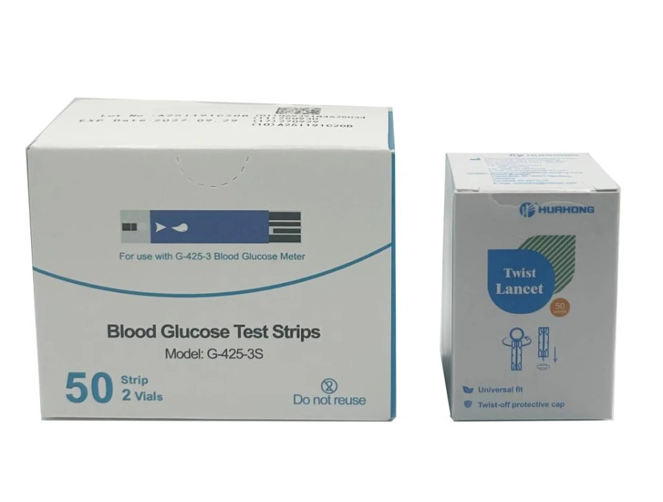 - Incluye 50 tiras reactivas de glucosa en sangre y lancetas giratorias.