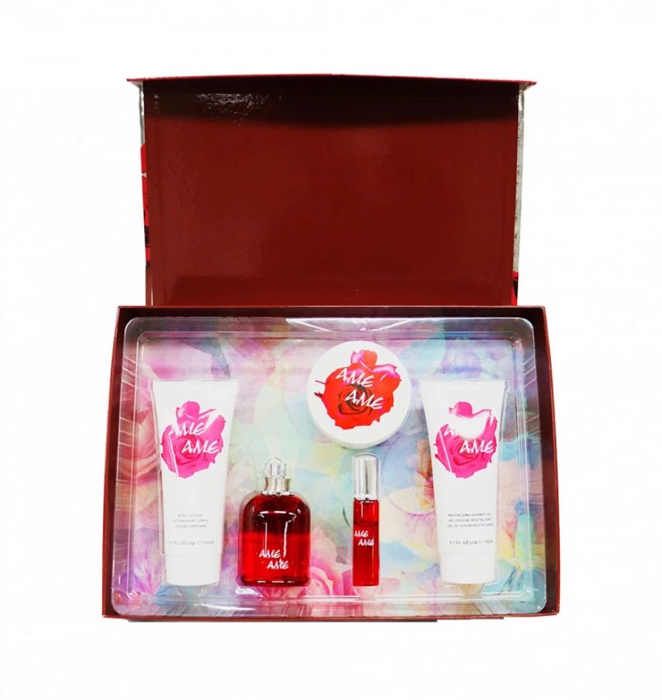 - Contiene: Perfume 100ml / Mini perfume 15ml / Loción corporal 150ml / Gel de ducha 150ml / Polvo.