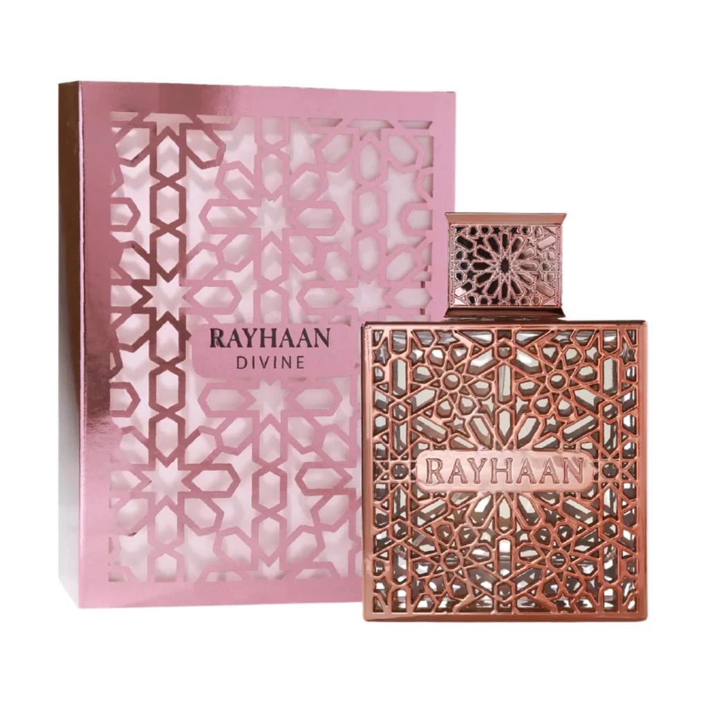 - Rayhaan Divine es una cautivadora fragancia unisex que combina a la perfección frescura, elegancia y placer.