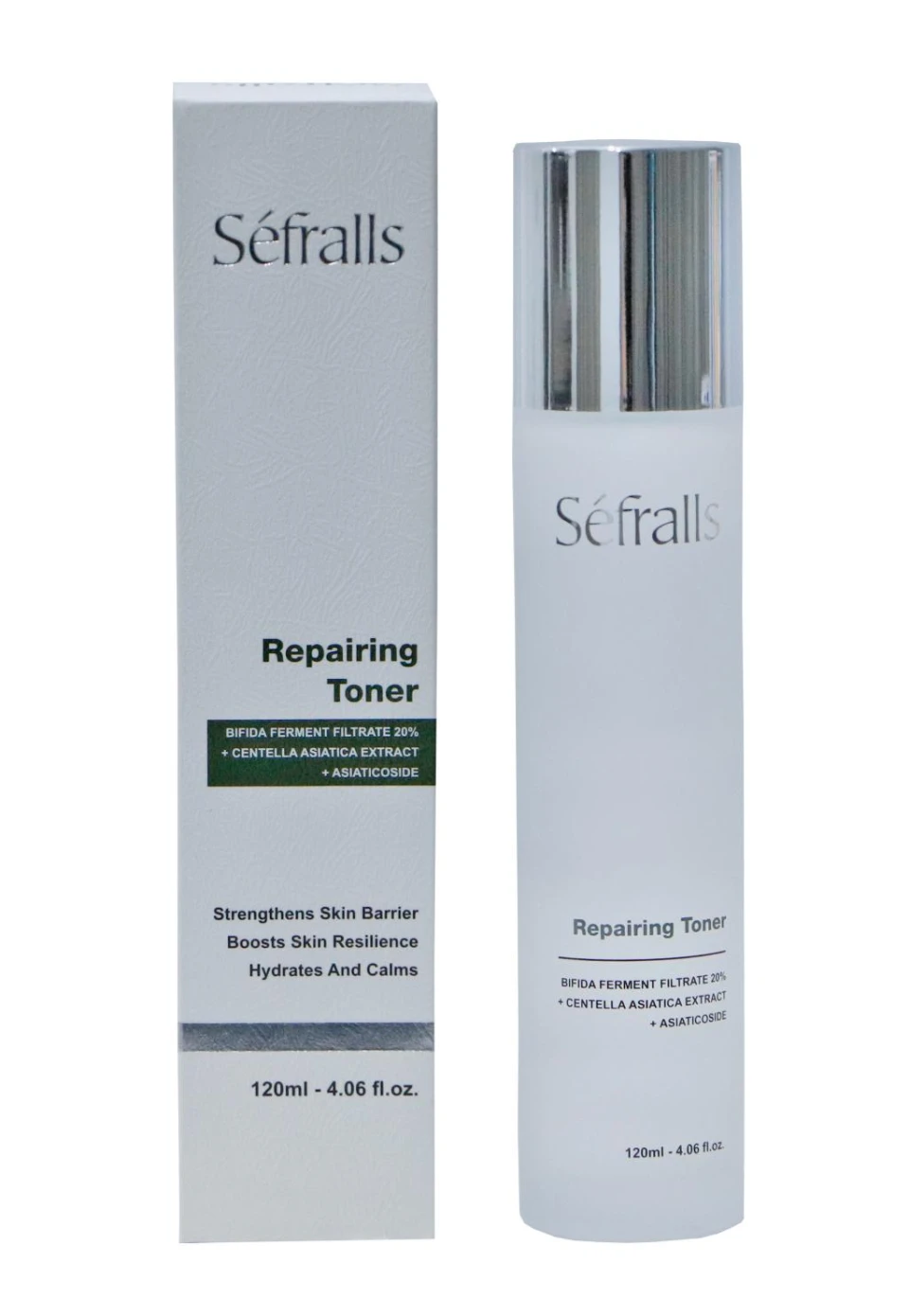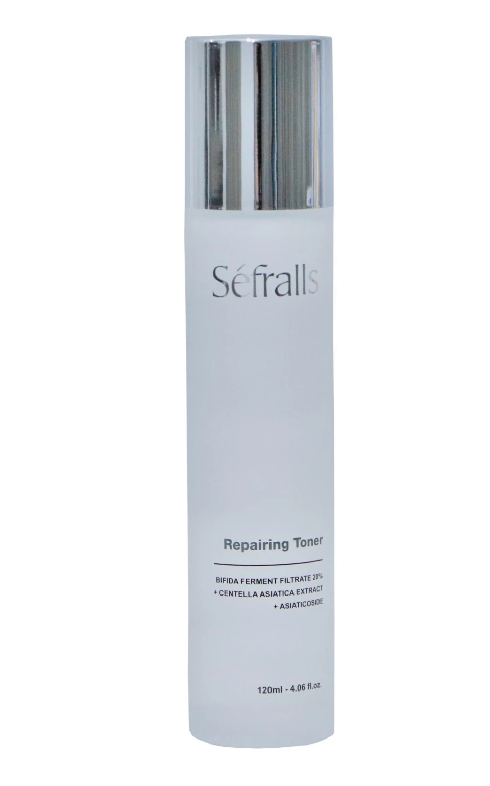 - Séfralls Repairing Toner es un tónico facial diseñado para fortalecer la barrera cutánea, aumentar la elasticidad de la piel, hidratar y calmarla.
