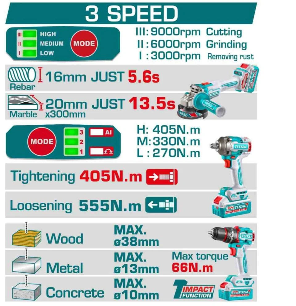 - Velocidad sin carga: 0-1800/0-2000/0-2400 rpm
