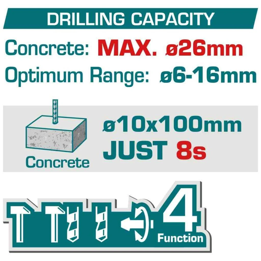 - Capacidad máxima de perforación: