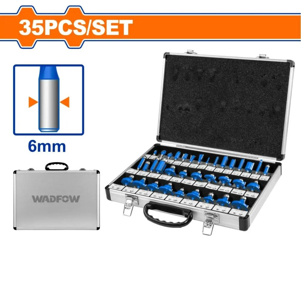 - Juego de 35 brocas para fresar madera de 6 mm