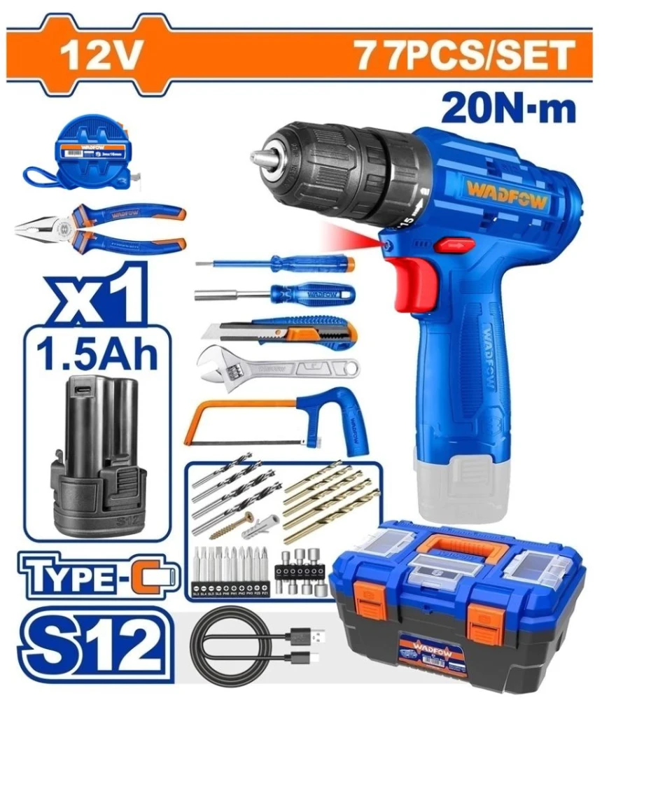 WADFOW JUEGO DE HERRAMIENTAS TALADRO 77PCS WDT4B77