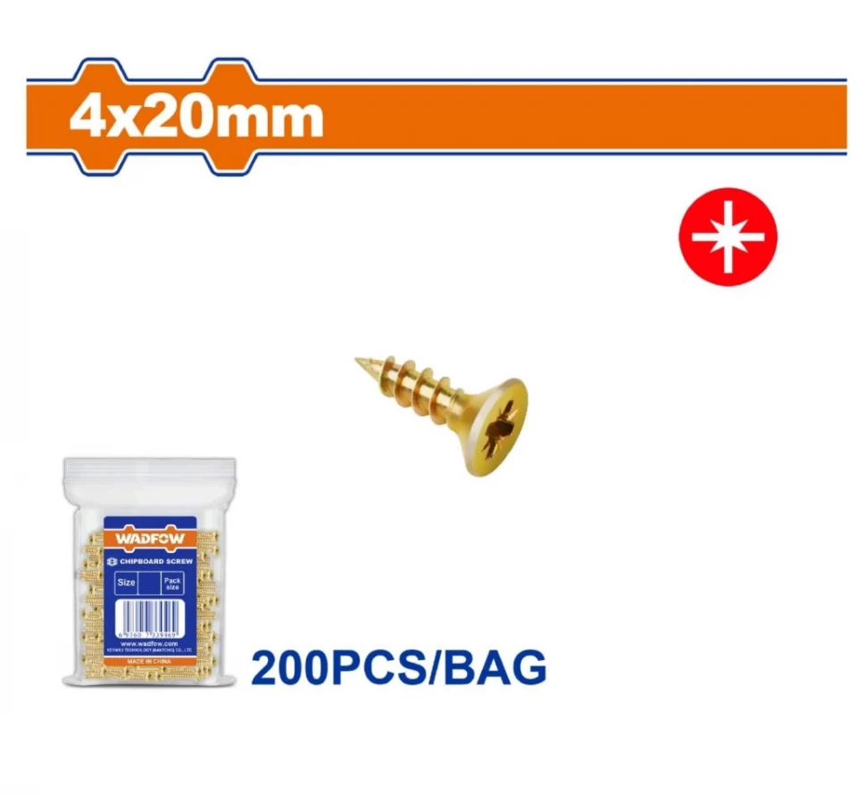 WADFOW TORNILLOS PARA AGLOMERADO POZIDRIVE 4x20MM 200PCS WXS5921