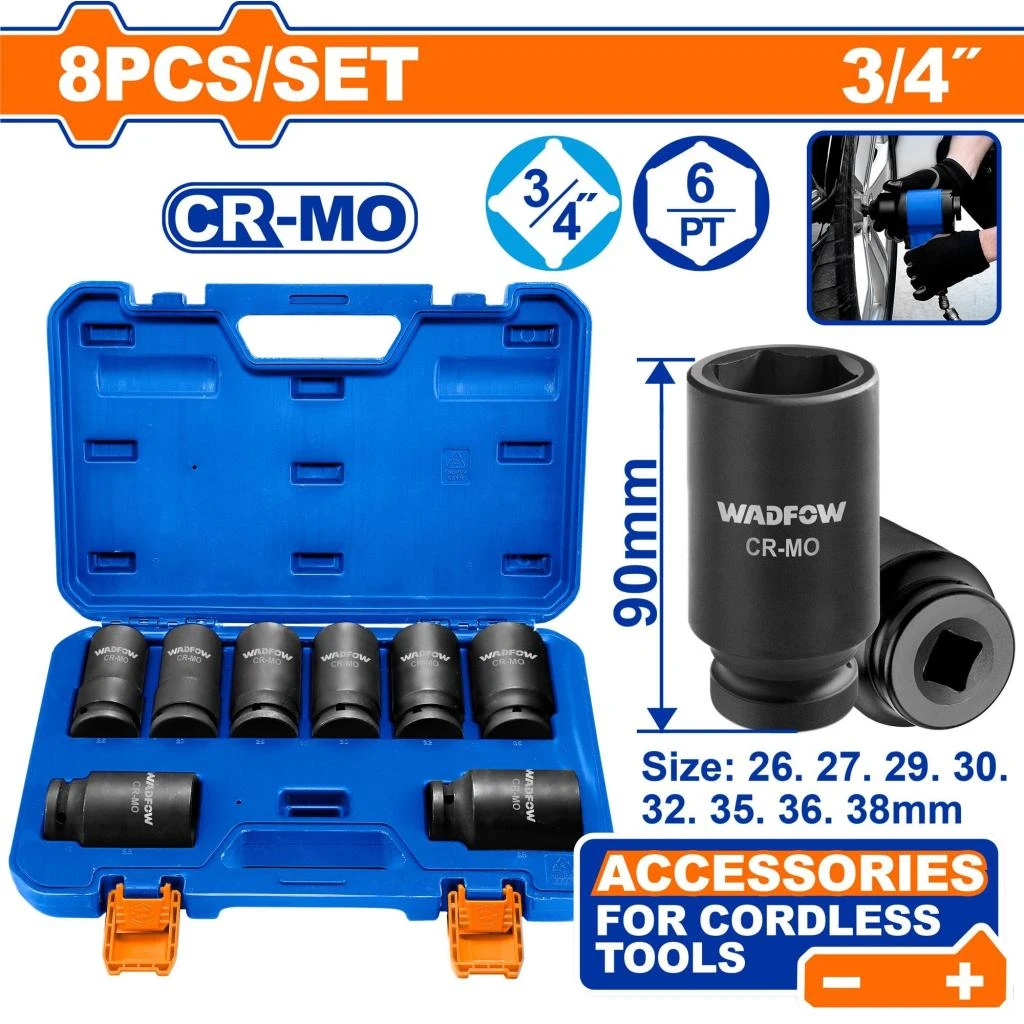 WADFOW JUEGO DE DADOS DE IMPACTOS 8PCS 3/4" 90MM WMS4D09